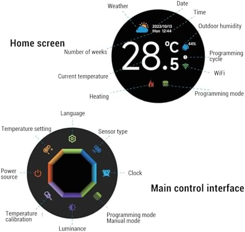 DESIGN MODERNE : le thermostat intelligent est doté de boutons rotatifs bidirectionnels pour une sensation soyeuse et une ambiance artistique pour rendre l’intérieur plus beau. Adaptez votre décoration pour créer une ambiance confortable dans votre maison ou votre bureau