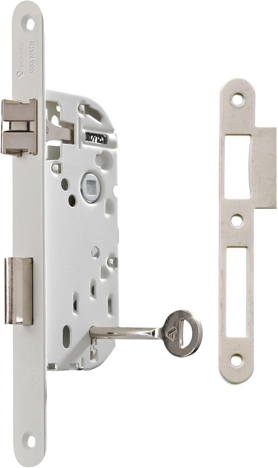 Cette serrure à mortaiser Vachette est idéale pour les portes de Chambre ou portes de Bureau. Sa fonction à clé permet le verrouillage grâce à une clé standard en L. Elle est compatible avec les portes bois, métal et aluminimum. Grâce à ses trous de fixation traversants elle est compatible à tous les types de poignées, sur plaque ou sur rosace.